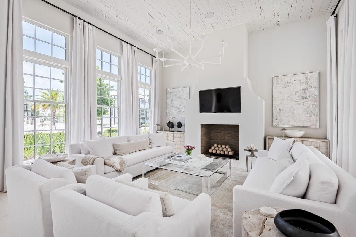 Iconic location and inspirational design join to craft one of the most pristine offerings to come to market in desirable Alys Beach. Drawn by Jeff Dunham, and built to the superior standards of Arkon construction, this 3,431 square foot home provides the charm and whimsical detailing that the community is famed for, while also providing a crisp and clean contemporary interior, rarely seen executed to the level of finish this property showcases. The main level encapsulates an open living space, flanked by floor to ceiling windows to the east and the west, while a formal dining space flows into the chef’s kitchen, fully furnished with Thermador appliances, floating shelving, custom cabinetry, and quartz countertops for a modern take on coastal luxury.