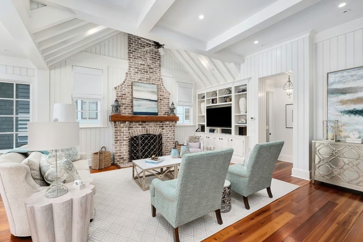 A home on South Watch Tower Lane should have a lofty location from which to view your surroundings, and this one-of-a-kind WaterSound Beach home delivers with breathtaking sunrises, sunsets and gulf views. Featuring six bedrooms, six-and-a-half baths and 4,996 square feet of living space, this Nantucket-style home is just three lots from the gulf in WaterSound Beach. Built by Ficarra Builders in 2007, the timeless stylings of this retreat are paired with a heated pool and carriage house built in 2019, designed by architect Geoff Chick. The home has recently been repainted and redecorated in bright whites, cool grays and an extended coastal palette.