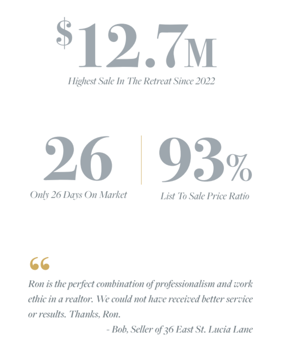 Perched on coastal dunes, this beachfront home embodies the prestige of The Retreat, 30A’s most coveted community. Extending to the water's edge, this meticulously built property offers uninterrupted 180-degree views from Destin to Panama City Beach and features year-round outdoor living, creating a unique opportunity. Its appeal, combined with a multi-phase marketing strategy, enabled 36 East Saint Lucia Lane to enter escrow in less than 30 days, marking the first west 30A property above $10 million to go under contract and close in 2024.