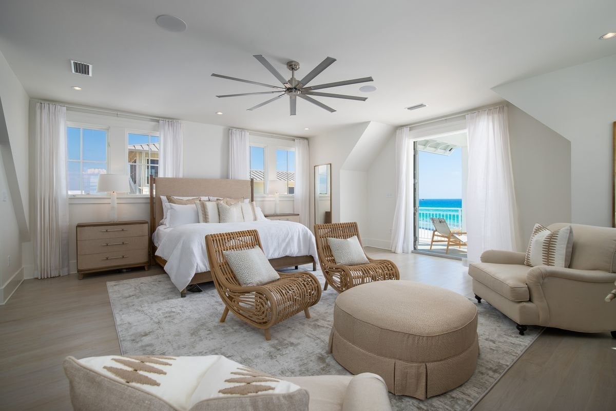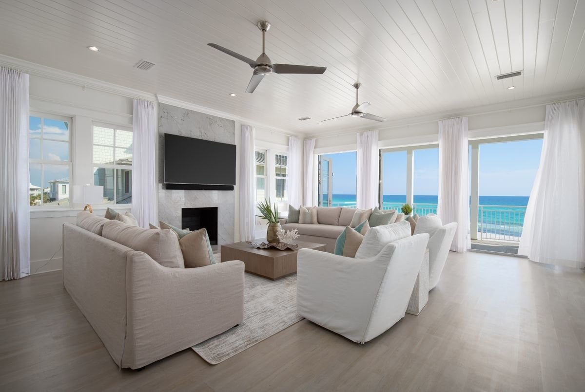 Fully refurbished by Davis Dunn Construction, this awesome home has an attractive floor plan and dedicated space for every activity including a den, built-in bunk room and a huge family room at pool level. The home offers State-of-the-art electronics, an elevator and a comprehensive security system. Interior design is curated by Laura McKee at Dwell. On the top floor, French doors frame stunning views while unique ceilings add to the charm. The main sitting room is equally bright and attractive with a feature fireplace and windows delivering multi-aspect vistas. As you would expect, the kitchen is both stylish and practical with a long bar for serving up snacks and cocktails at the appropriate hour. If all this is not enough, architectural plans are available to add a two bedroom, two bath carriage house accommodation for independent living above the two-car garage. With its tropical landscaping and beachfront position, this fabulous home has all the appeal of a castaway island yet is within easy reach of Seagrove Beach amenities, restaurants and shops at WaterColor, Seaside and surrounding areas. It's definitely the best of both worlds.