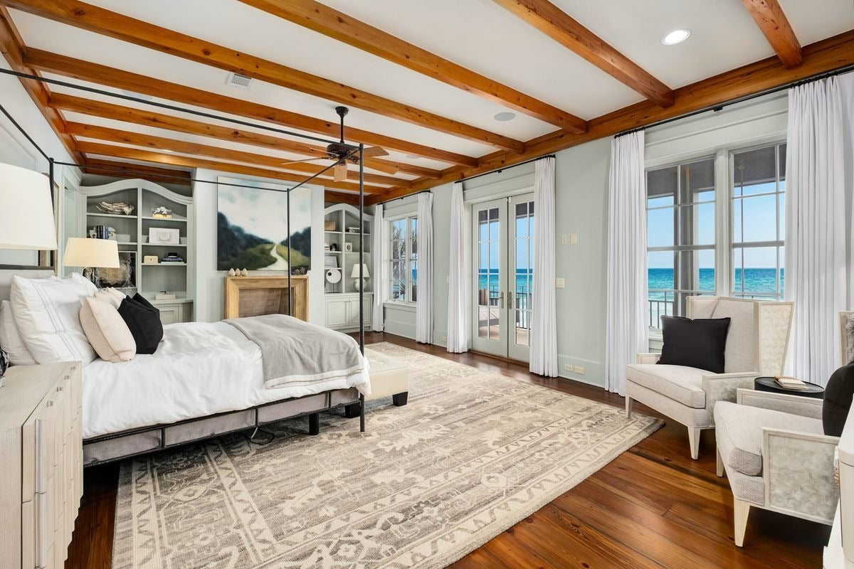 Sitting atop Blue Mountain Beach overlooking white sand coastal dunes, this beachfront home reflects the prestige of 30A’s most desirable community, The Retreat. Deeded to water’s edge, meticulous construction, "smart home” features, and year-round outdoor living make this an exceptional opportunity. South facing, this one-of-a-kind home offers uninterrupted 180-degree views to Destin and Panama City Beach. A whimsical entry door opens onto a sunlight-filled main floor highlighted by a grand staircase. This exquisitely fully-furnished masterpiece accentuates a light, bright interior while hardwood flooring and wood beams bring warmth throughout the living and bedroom spaces. Indoor and outdoor spaces are seamlessly joined by stone flooring. Four floors, five bedrooms and five-and-a-half baths are all easily accessed by elevator.